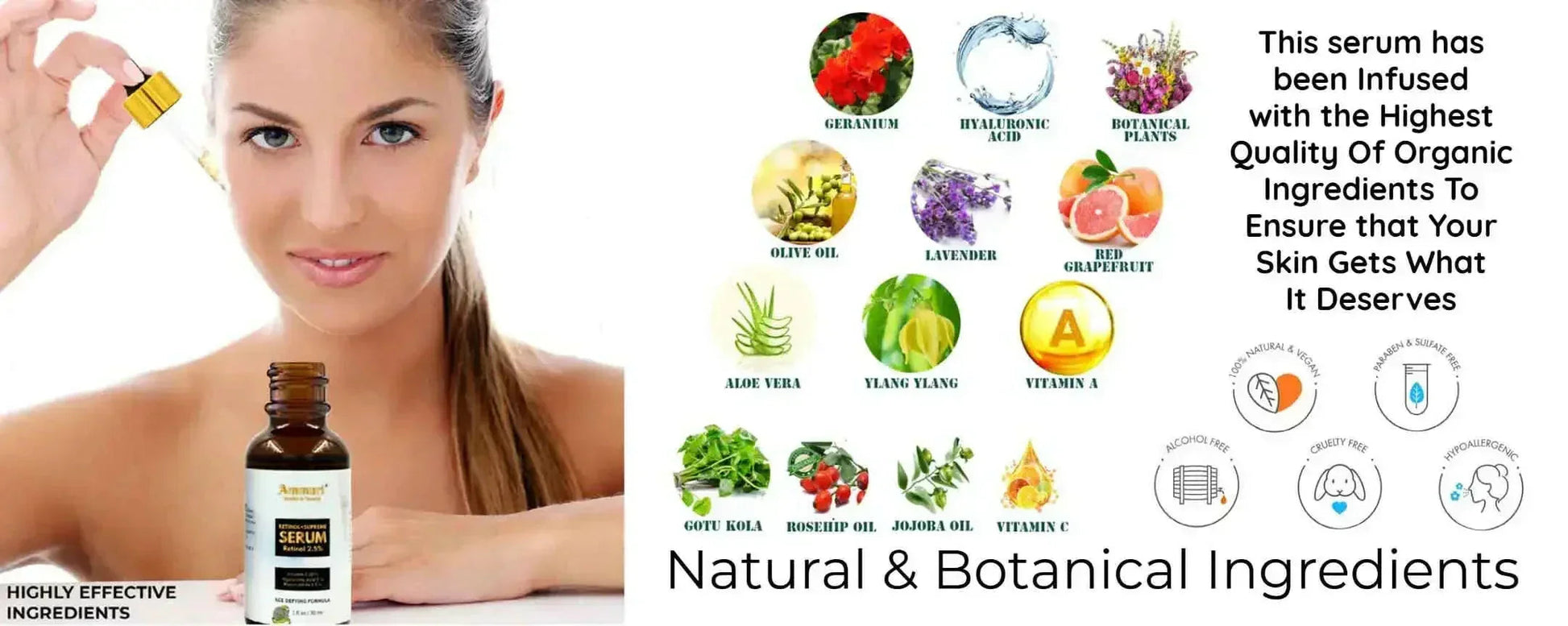 Ammuri Advanced Supreme Retinol Anti-Wrinkle Treatment Serum contains Retinol Supreme 2.5% Serum, which specifically targets the signs of aging. This powerful anti-aging face serum promotes healthier skin by accelerating cell turnover. As a result, you can see a reduction in fine lines and wrinkles in as little as a few weeks. With consistent use, users often report a smoother and more radiant complexion.