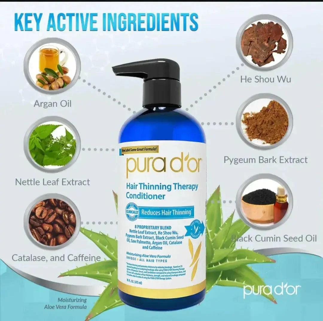 Discover the transformative power of PURA D'OR Advanced Hair Thinning Therapy Conditioner, your go-to solution for achieving stronger, healthier hair. At Ammuri Beauty, we prioritize products that enhance your natural beauty. This natural hair thinning conditioner is crafted to target thinning hair with a blend of potent ingredients.