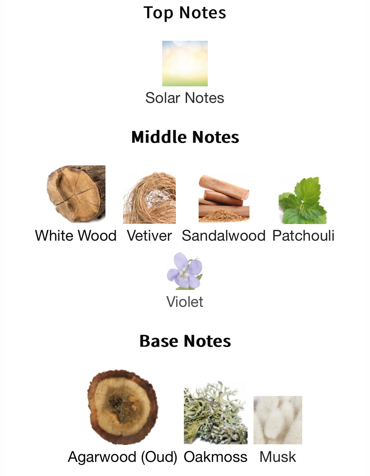 Heart notes: Vetiver, White Wood, Sandalwood, Violet, Patchouli