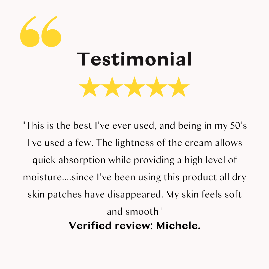 How to use: Massage a pea sized dab (a little goes a long way!) into face and neck morning and night after cleansing. Perfect for layering with serums and oils.