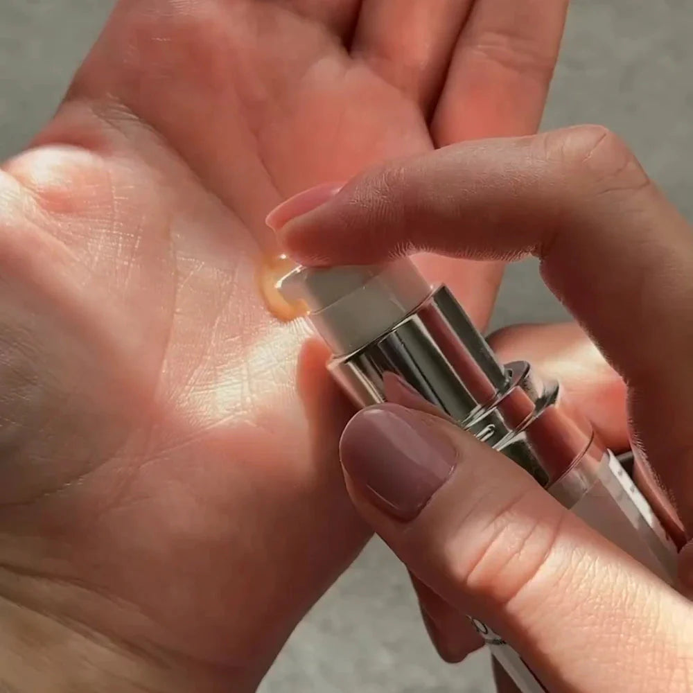 Gently pat 1 pump onto skin and glide over in an upward and outward motion, use palm of hand or closed fingers to spread oil over the skin.